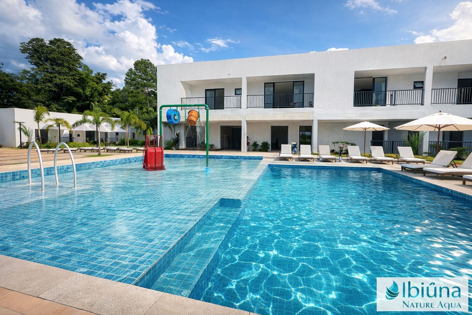 O IBIUNATURE Aqua é um Apart Hotel Resort com construções concluídas em 2026, desenvolvido com 14 apartamentos de alta qualidade, cada um podendo acomodar até 10 pessoas. Desfrute de espaços compartilhados como piscina, sauna, academia, FirePlace, brinquedoteca, pomares, salão de jogos americano, espaço Selfmart (mini mercado), lavanderia e estacionamento incluso. Apartamentos disponíveis para aluguel e venda.